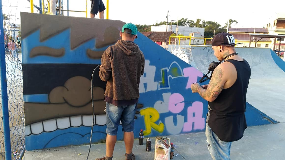 E nesse domingo tivemos várias artes fazendo suas intervenções, e o que tem chegado devagar, mas, com intensidade e a poesia e o grafite, queremos agradecer ao Junior de Piçarras e o Juba de Penha que vem fortalecendo com a família.